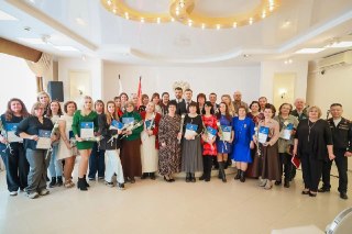 Женщин наградили почётными грамотами и каждой вручили букет цветов.